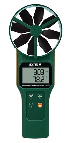 Measures Air Velocity, Air Flow, Relative Humidity, Wet Bulb, Dew Point and Carbon Dioxide