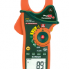 This CAT IV True RMS clamp meter features a built-in IR thermometer with laser pointer for non-contact surface measurements from -58 to 518 °F (-50 to 270 °C). Clamp measures AC current up to 1000 Amp with a maximum resolution of 0.1 Amp. The 1.7-inch jaw fits around conductors up to 750MCM. Peak hold captures motor inrush currents and other surges. Data hold and auto power off functions. Other functions include AC/DC Voltage, resistance, Type K thermometer, capacitance and frequency. Complete with test leads, Type K temperature probe, 9 Volt battery and case.